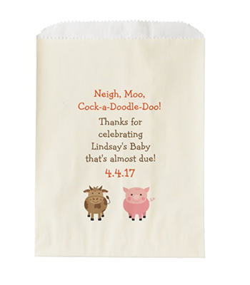 First up is always the invite. I like to use wording that goes with the theme. So, for this I did “Neigh, Moo, Cock-a-Doodle-Do… A new baby is almost due!” Plus, it’s always great when it rhymes.