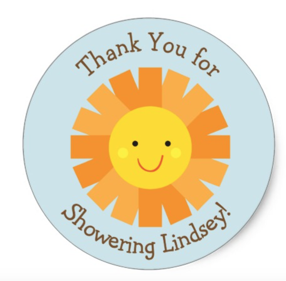 Another item, is a way to say thank you! I like to go farther than just the thank you card. Have thank you favor tags or bags and stickers at the shower and give the cards to the new mom to send out after. You can make your own with our printables in The Printables Club or purchase on Zazzle now.